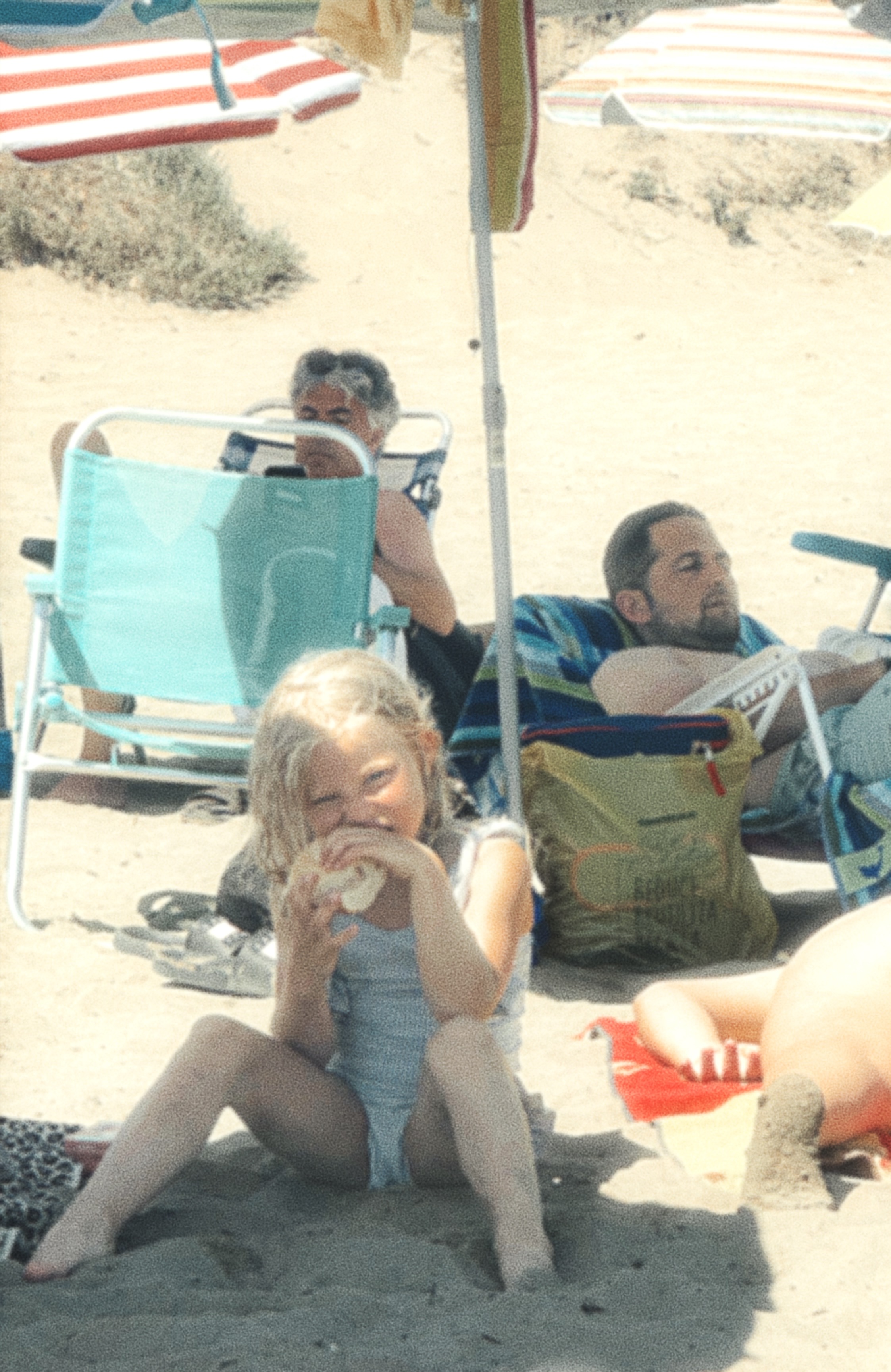 Tiden har stått till här och bara det är en stil i sig. I Spanien är alla i familjen tillsammans på stranden. Jag tröttnar inte på att smygkika på de äldre kvinnorna i stora örhängen i tältstolar: kedjerökandes och högljutt gestikulerandes mot männen där dem kämpar med tveksamma byggen av diverse färgglada parasoll. Dem mjuka cigarettpaketen är aldrig frånvarande. Inte heller minst ett par limegröna bikitrosor i åttiotals-modell. Kylväskorna i frigolit dignar över med hemlagad kyckling, potatisgratänger och canjas. Barnen är överallt och det är en vibe.