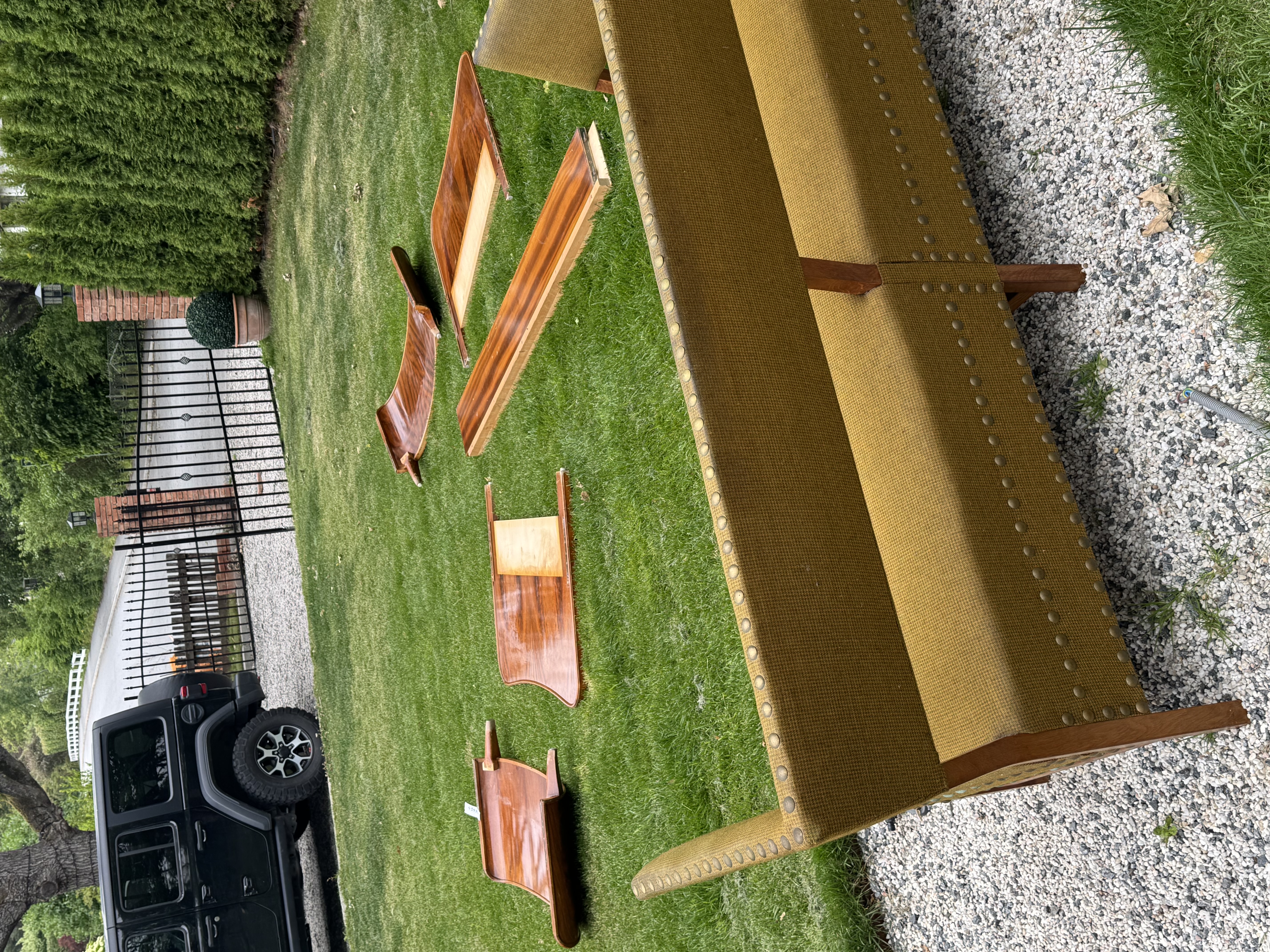 Ibland gör jag oerhört bra inköp och ibland mindre bra. Det ni ser ovan är två helt otroliga mahogny-sängar till barnen som jag vann på auction för en spottstyver (oerhört bra inköp), samt en magisk dansk soffa från ca 1950. (oerhört bra inköp men också mindre bra pga passade inte in för jag hade inte mätt ordentligt) . Därför är soffan också till salu för precis samma pris som jag vann den för, skriv om du är intresserad! G håller på att bli tokig där den tar upp halva nedervåningen i väntan på att jag löser situationen så the earlier it´s gone the better. Sorgligt eftersom jag hade tänkt att den skulle vara perfekt som kökssoffa men c´est la vie