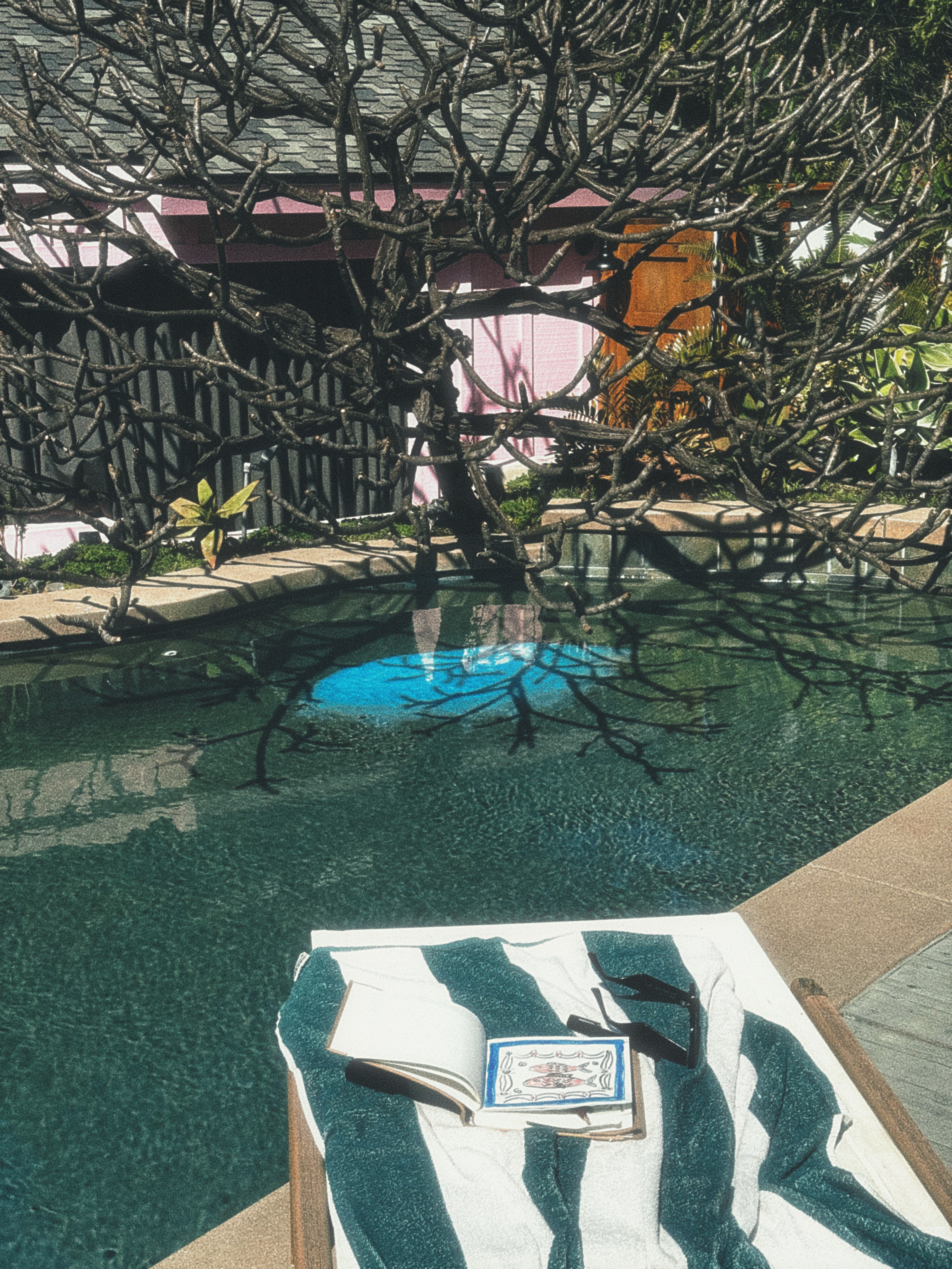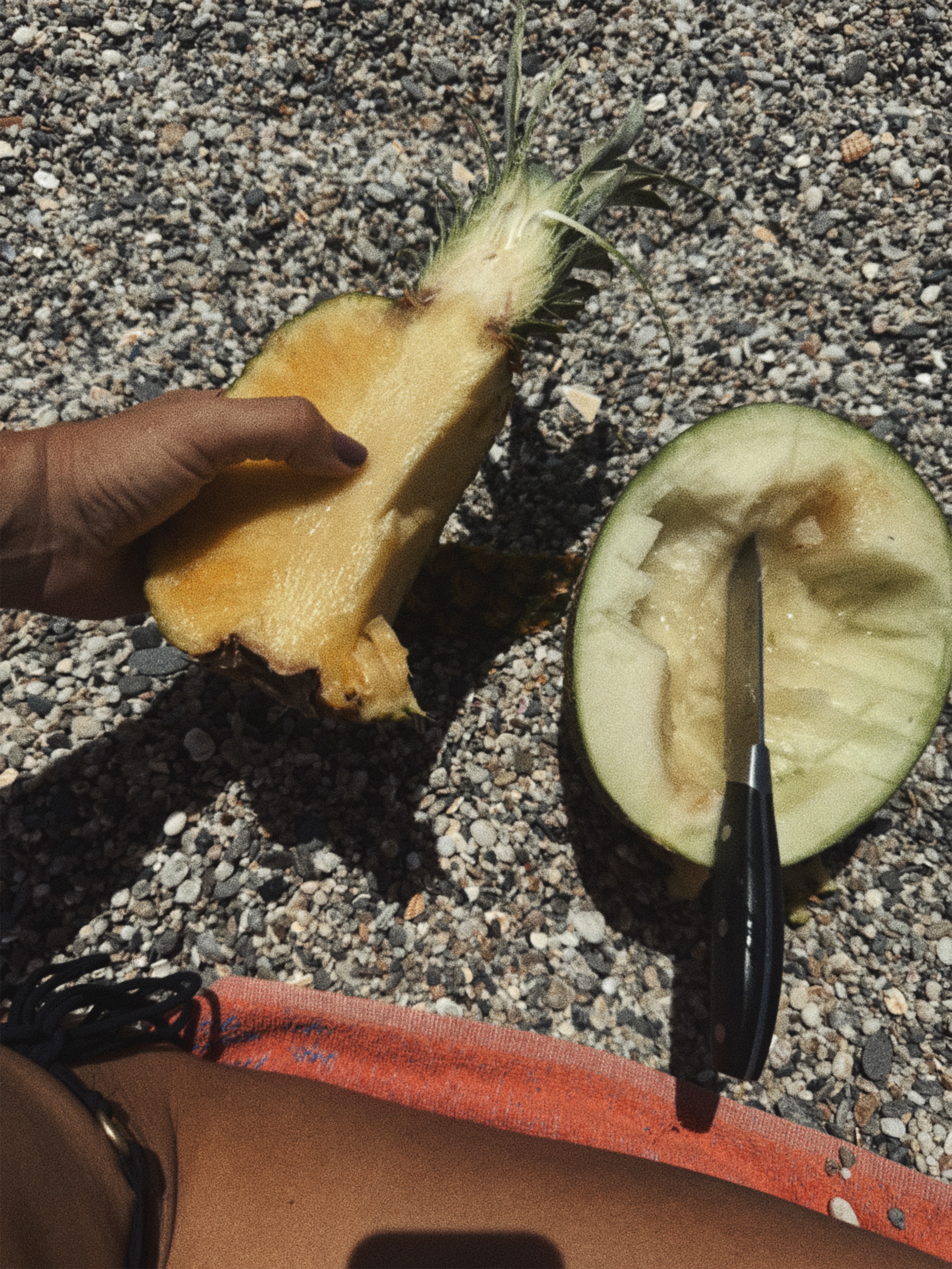 Vi äter ananas som rinner ner över handlederna och jag läser tre sidor ur Joan Didion - Anteckningar till John (som jag måste erkänna ger mig dubbla känslor: jag vill sluka den /men hur kan man ge ut någons dagbok postumt såhär det känns så fel att läsa?) Sedan behöver någon ett plåster, någon annan en macka och snart är jag långt ifrån min bok och istället mitt i ett passionerat samtal om ifall rosa eller blått är den allra finaste färgen. Spanien i juli är som en parentes i tiden för mig– het, flytande och avslappnande på sitt märkliga intensiva men ändå underbara, långsamma sätt. Vi åkte till stranden vid femtiden. När jag dyker ner i saltvatten är allt förlåtet.