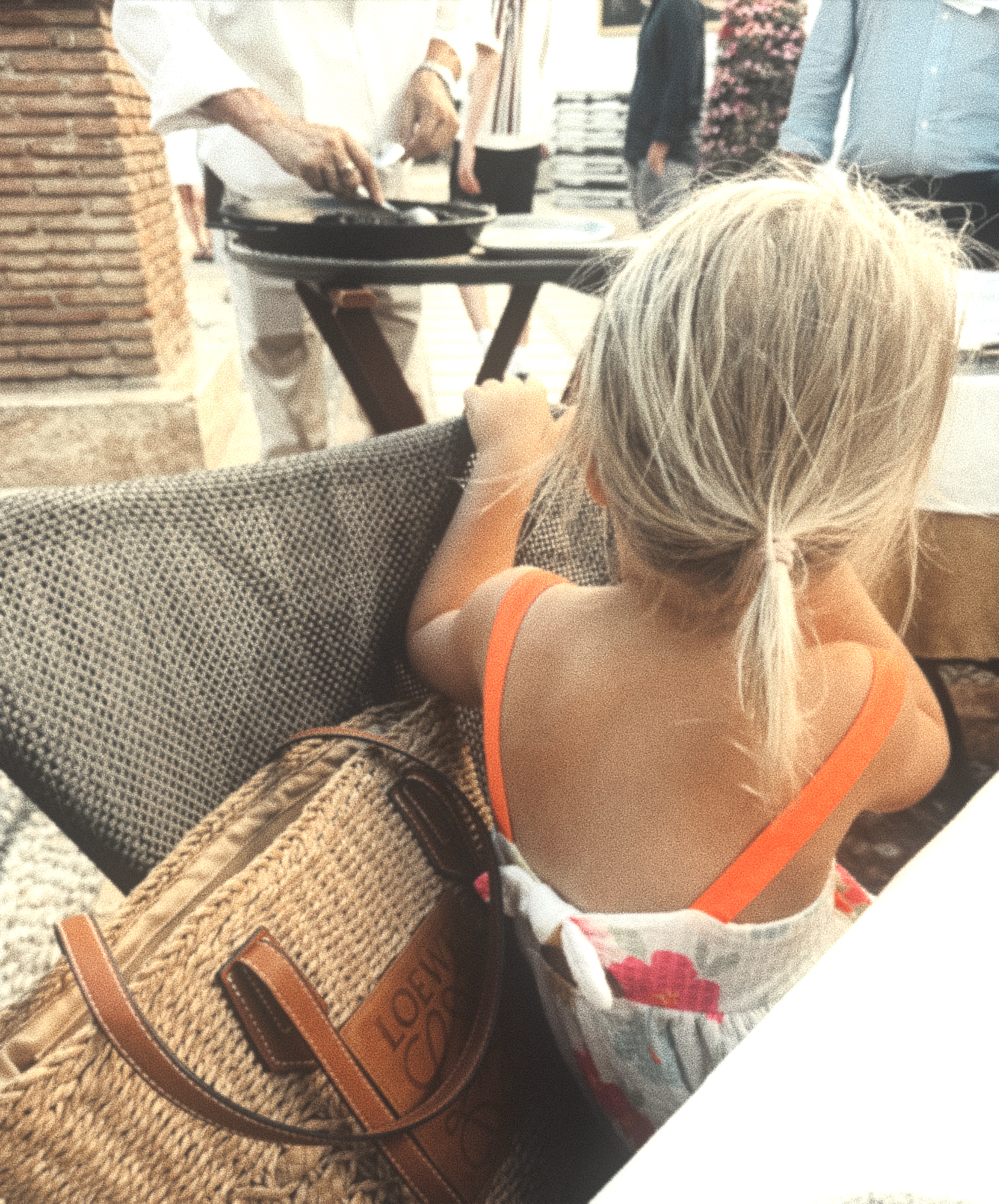 Tiden har stått till här och bara det är en stil i sig. I Spanien är alla i familjen tillsammans på stranden. Jag tröttnar inte på att smygkika på de äldre kvinnorna i stora örhängen i tältstolar: kedjerökandes och högljutt gestikulerandes mot männen där dem kämpar med tveksamma byggen av diverse färgglada parasoll. Dem mjuka cigarettpaketen är aldrig frånvarande. Inte heller minst ett par limegröna bikitrosor i åttiotals-modell. Kylväskorna i frigolit dignar över med hemlagad kyckling, potatisgratänger och canjas. Barnen är överallt och det är en vibe.