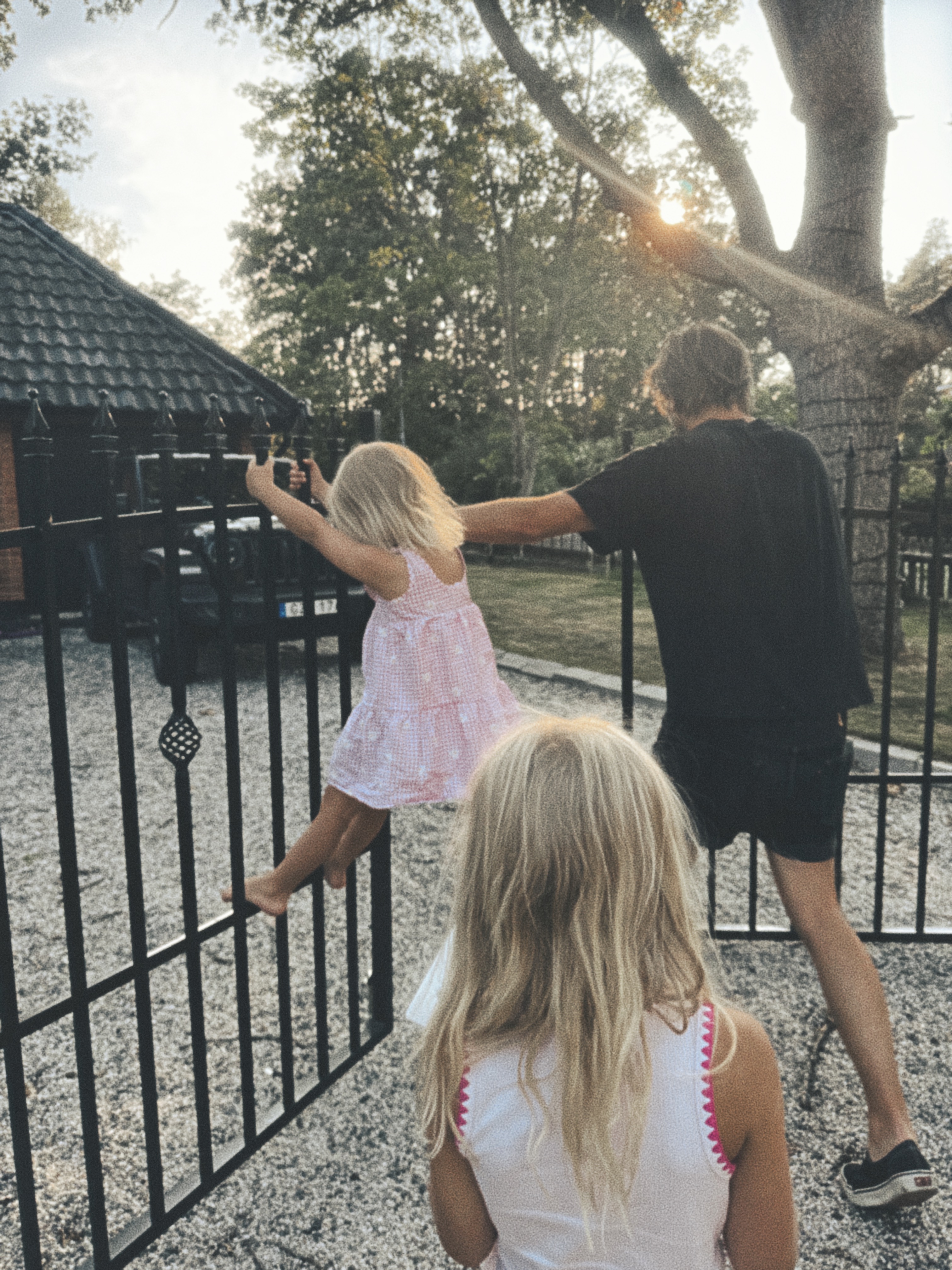 Tanken på att beskriva en soluppgång på ett poetiskt sätt gör att jag mår lite illa, men jag skriver ändå för att jag vill minnas den här morgonen. Det känns som att någon lagt guldpapper över allting när den spanska morgonsolen sträcker sig över bergskammen. Jag sluter ögonen och låter det orangea ljuset bränna på ögonlocken där jag sitter i en plaststol med kaffe i handen på det lilla torget nedanför oss. Syrsorna har klivit av sitt nattskift, cikadorna är redo att ta över och jag dricker en andra kopp av mitt svaga spanska kaffe. Klockan är lite över 07:00 och alla i familjen sover fortfarande.